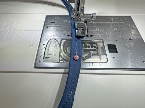 - Stitch down the double-fold edges, running the seam as close to the cording as possible. We switched to a Zipper foot for this narrow seam.