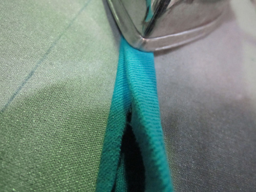 - Edgestitch this second fold in place to create the ¾” casing for the snap frame. We found it was easier to stitch from the center out to each end rather than try to start the seam at the thicker ends.