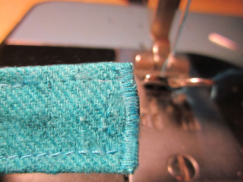 - Finish one end of the remaining strap length with a tight zig zag stitch.
