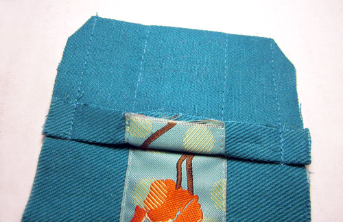 - Fold back each end 2¾”, then fold up the raw edge ½”. The result looks like a little cuff. Pin in place.