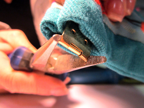 - Clip into the seam allowance just below the side seam on each side (and each end). Again, be careful not to clip through the seam. Turn the cuff right side out. Press.