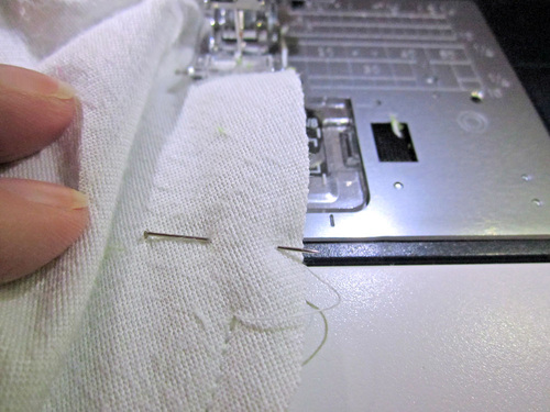 - Machine baste in place, making sure the flange of the trim falls along the ½” seam line. Because it’s so narrow, this means the trim won’t sit flush with raw edge of the fabric.