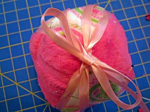 - 2 yard lengths of ¼” wide, double-faced satin ribbon in assorted colors to coordinate with your fabrics; we used soft pink and soft yellow