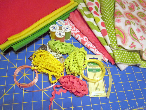 - 1½ yard lengths of mini pom trim in assorted colors to coordinate with your fabrics; we used lime green and hot pink