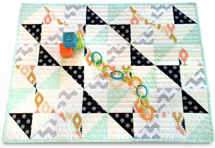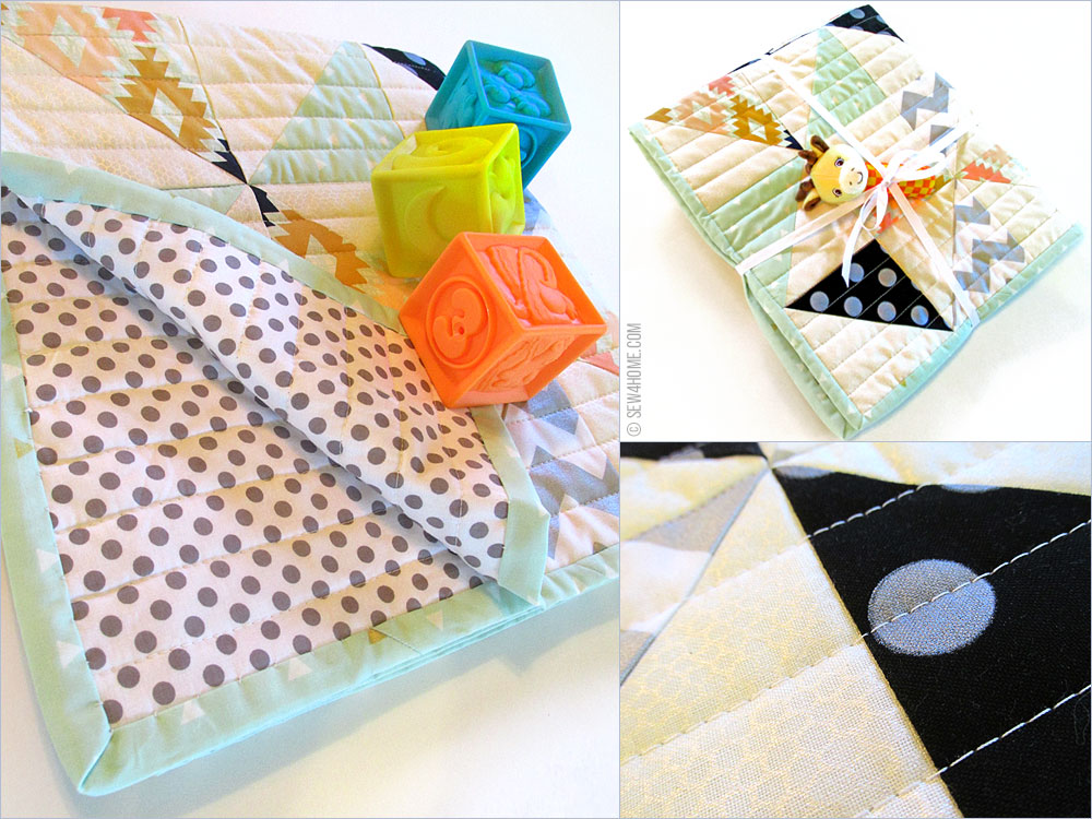 The combination of distinct colors and a fun sparkle makes for a very unique baby quilt. Why not be a fashion trendsetter from day one, right?!