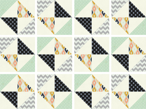 - As you can see in the drawing below, the pinwheel pattern now appears across the quilt and gives the patchwork a much more complex looking pattern than the actual stitching demands (we love the secret non-complexity!).