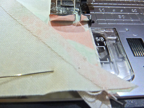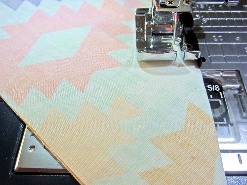 - Using a ¼” seam allowance stitch the center diagonal seam.