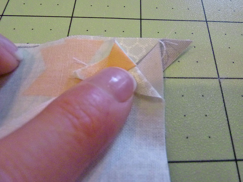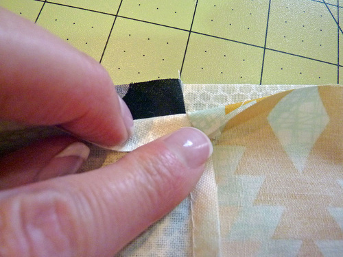 - Your seams ‘nest together’ and create perfect points on the front (a perfect intersection of the corners), in part because of how you alternated the direction of the seam allowances above.