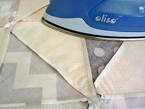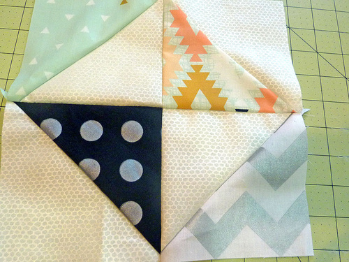 - Press the seam allowance towards the print triangle (the darker triangle).