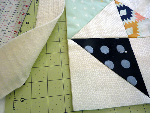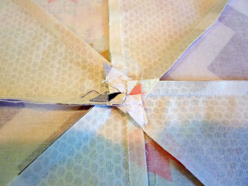 - In addition to your careful seam allowance matching, at the center points of each block you can pinwheel the seams for an even flatter finish. To do this, remove a few stitches from the seam allowance at the very center to open up the seam. This allows the points to make a little pinwheel at the back so the front of the quilt will lay nice and flat.