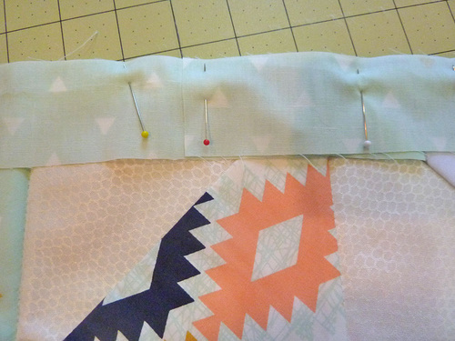 - Re-pin all the pins/safety pins through all three layers. If desired, you can also baste around the outer edges to hold the layers securely in place.