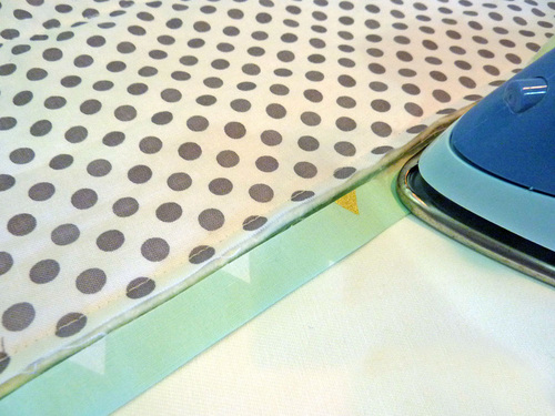 - Flip over the quilt and press in the raw edge of the binding ½” all around.