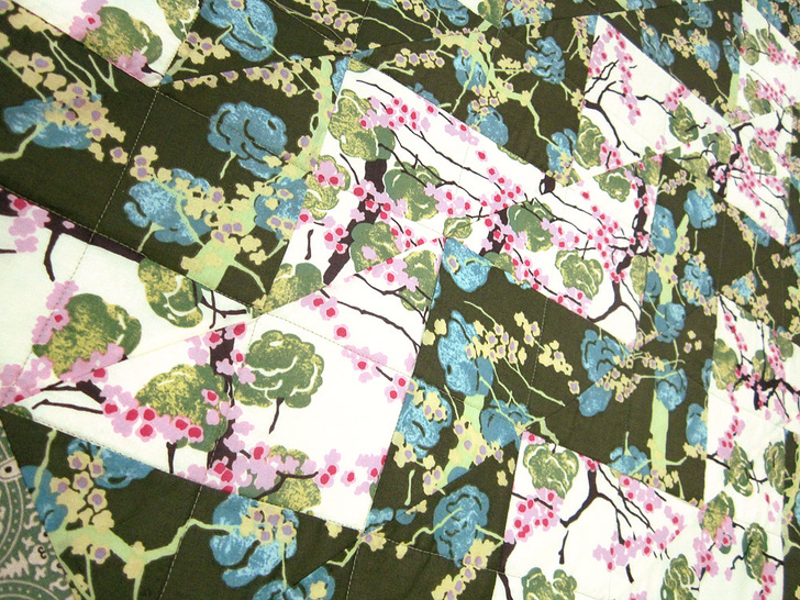 One of the things that made the stitching easier was our decision to use a fusible batting. By adhering the more slippery, stretchy voile to a fusible batting, there was virtually no distortion when the final quilting was done.