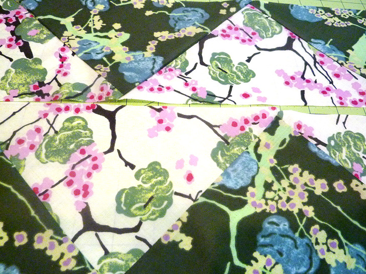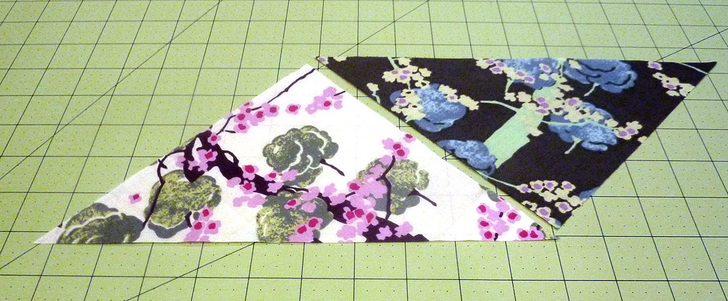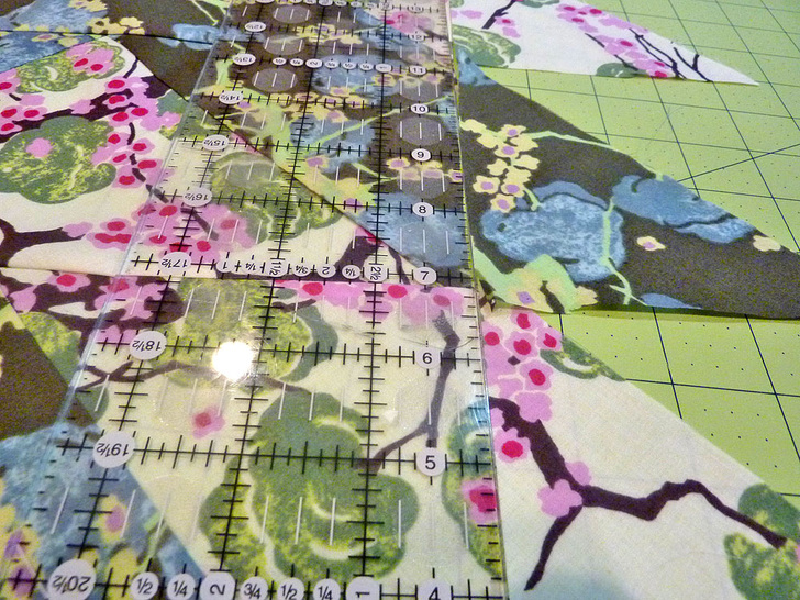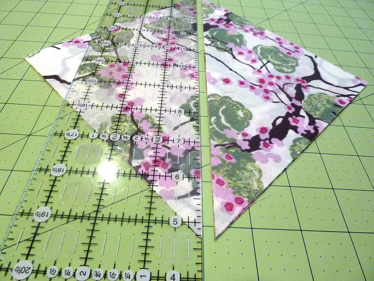 - As promised above, use your see-through ruler and rotary cutter to trim away the excess triangle fabric along both sides.