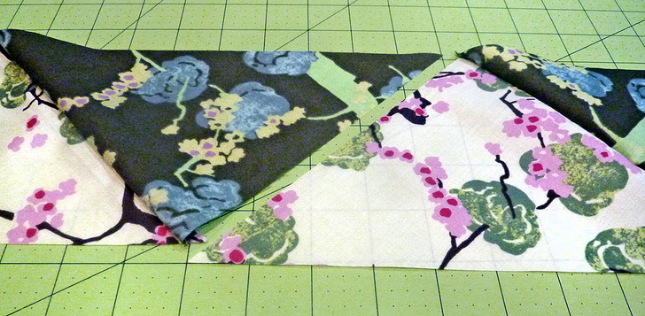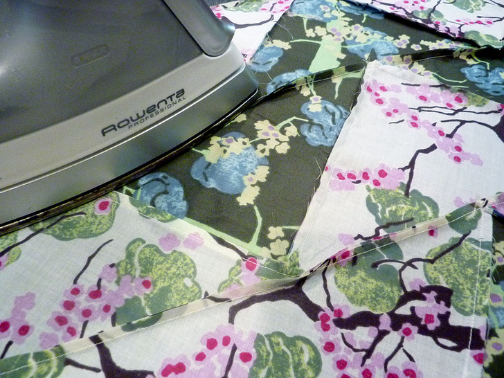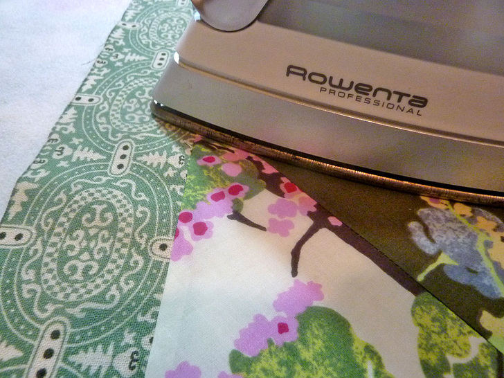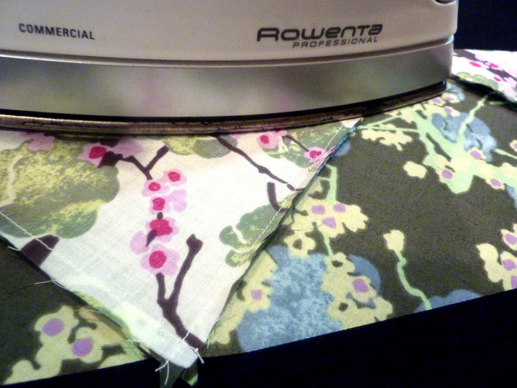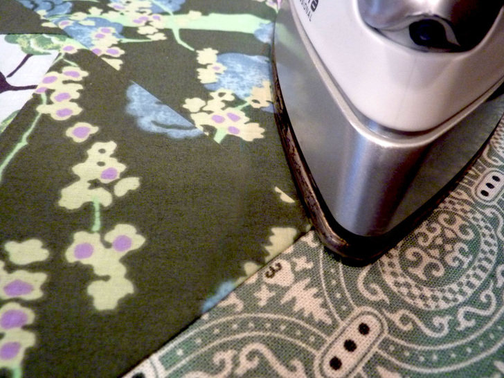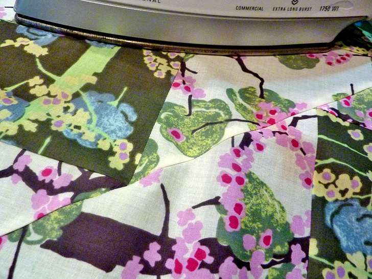 - Press all seams toward the darker triangles. As we mentioned above, be very gentle when pressing the voile so it does not stretch and distort.