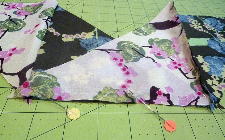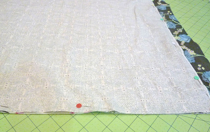 - Pin in place all around, leaving a 10″ opening along one side for turning.