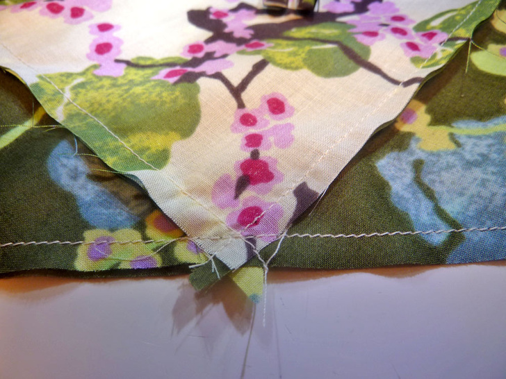 - On the sides, this means you will stitch right next to the trim but will not be catching the trim with the side seam. Instead, the fringe is completely secured with the seams along the top and bottom. This allows it to hang down correctly.
