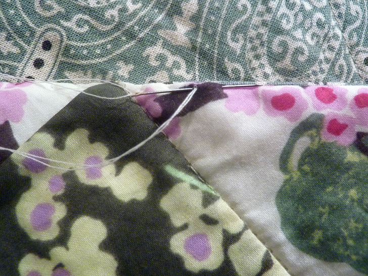 - Quilt diagonally along all the front zig zag seams. On the back this will create a pretty diamond pattern. You can see this pattern quite clearly on the drawings at the top of the page.