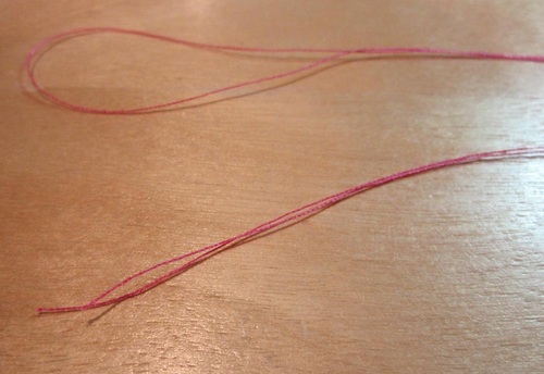 - To get a double strand, evenly fold your length of thread in half, so there is a loop at one end and two cut ends at the other.