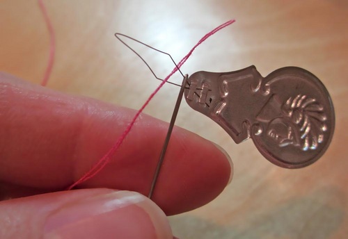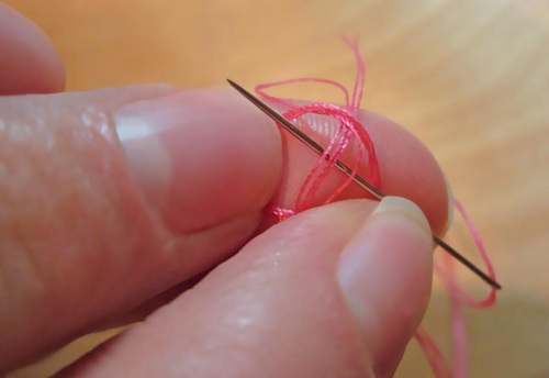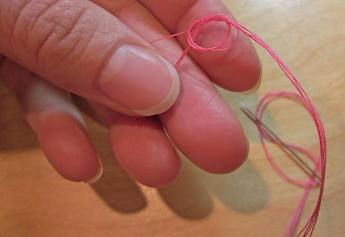 - Thread your hand needle with a double strand of thread.