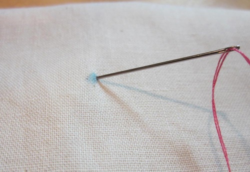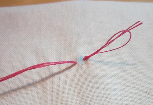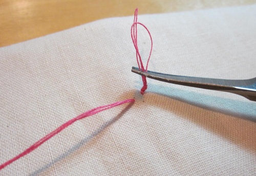 - Bring the needle in, then back out at the same point.