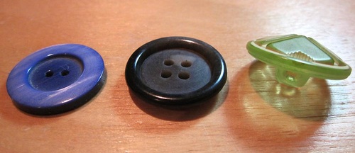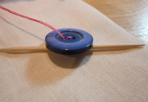 When using very thick fabrics, such as the heavy wools you’d find on a coat, you need to leave space between the button and the fabric so the buttonhole can overlap the button and you can actually button and unbutton the thing! This is called a “thread shank.” In order to sew on a button and create the needed space behind, use a toothpick under the button as you sew.