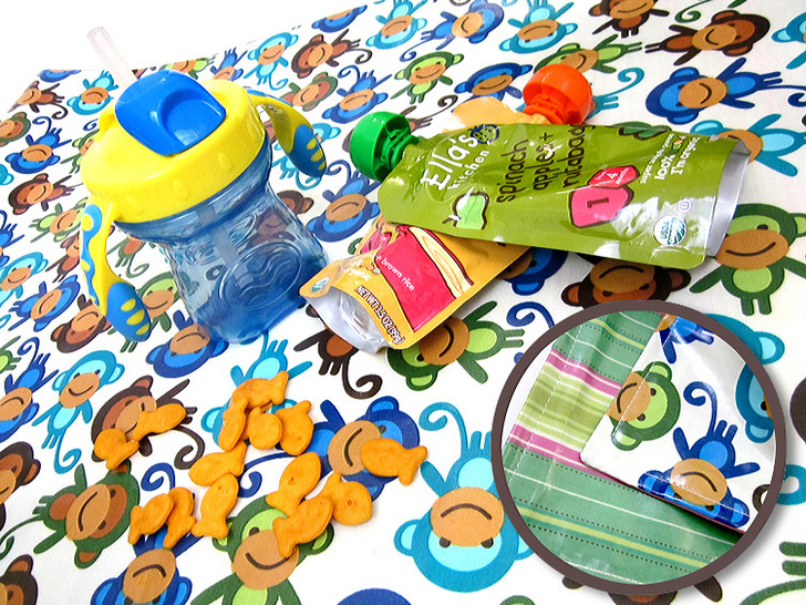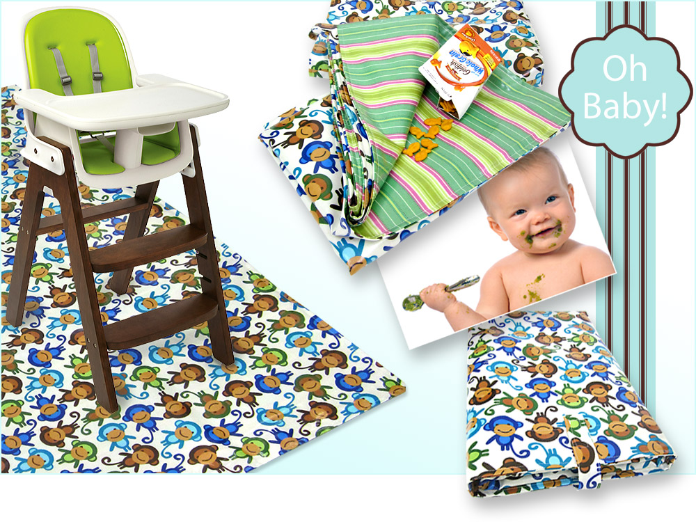 Protect your floors, rugs, and more with our two-sided laminated splat mat. When not in use, it folds away into a handy carrying case, which means you can also tote it along to protect the spaces you are visiting with your little mess maker. Good thing they look so cute creating all this chaos!