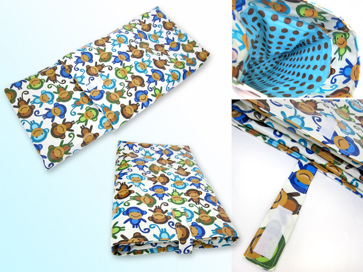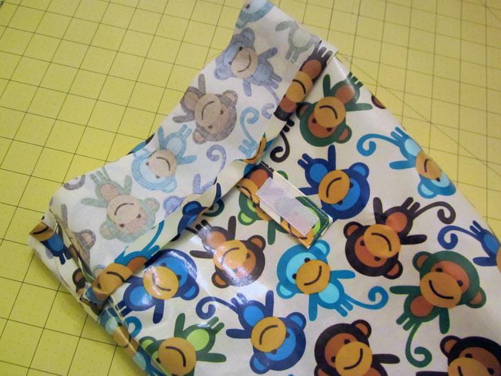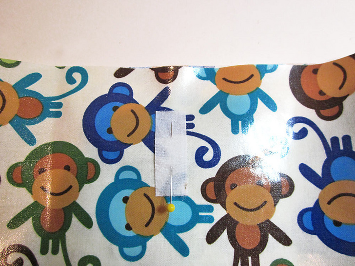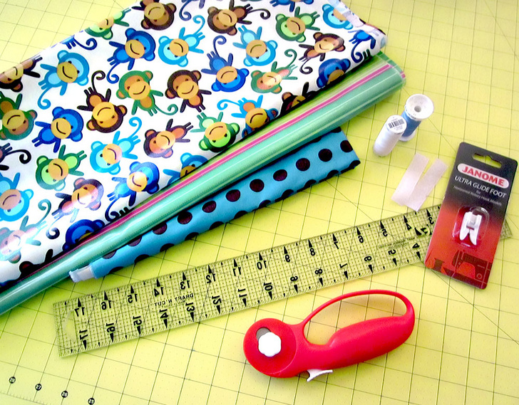 • 2 yards of 54″+ wide cotton laminate, vinyl or oilcloth for the splat mat front and carrying case exterior; we originally used Monkeys in Natural from the Urban Zoologie collection by Ann Kelle for Robert Kaufman Fabrics
