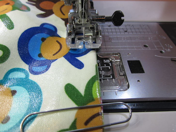 23. Using a ½” seam allowance, stitch all around, removing the pins or clips as you go.
