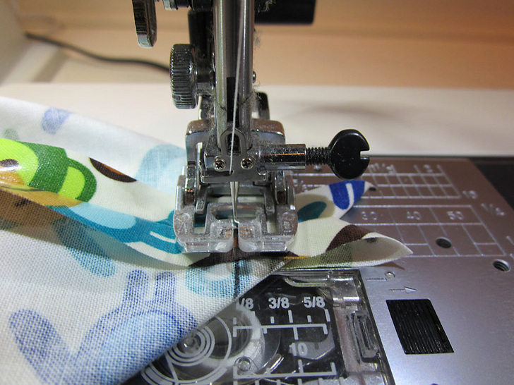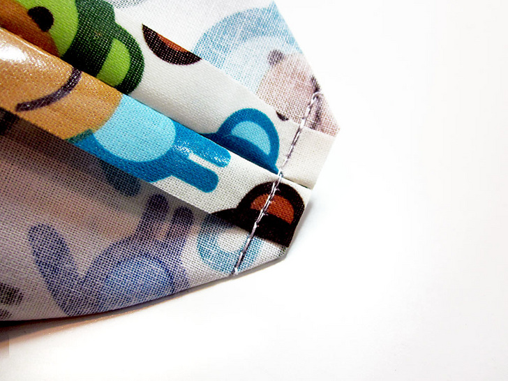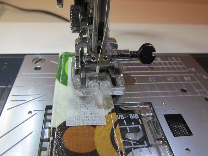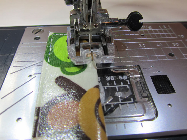 10. Edgestitch along both sides and across the bottom, pivoting at each corner. The raw end is left open.