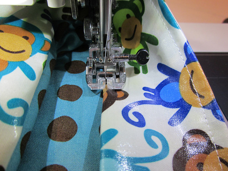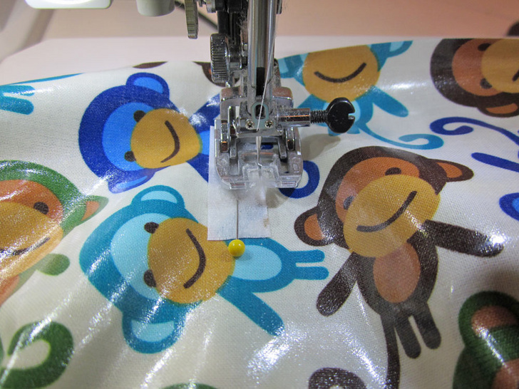 NOTE: As you know (or learned in our sewing with laminates tutorial), it’s best to use a Teflon® type foot, an Even Feed/Walking foot, engage your machine’s built-in feeding system or insert a layer of wax or parchment paper under the presser foot in order to allow the laminate to feed smoothly through the machine. Janome also offers an Ultra Glide Plate and Foot Set to make feeding extra easy.