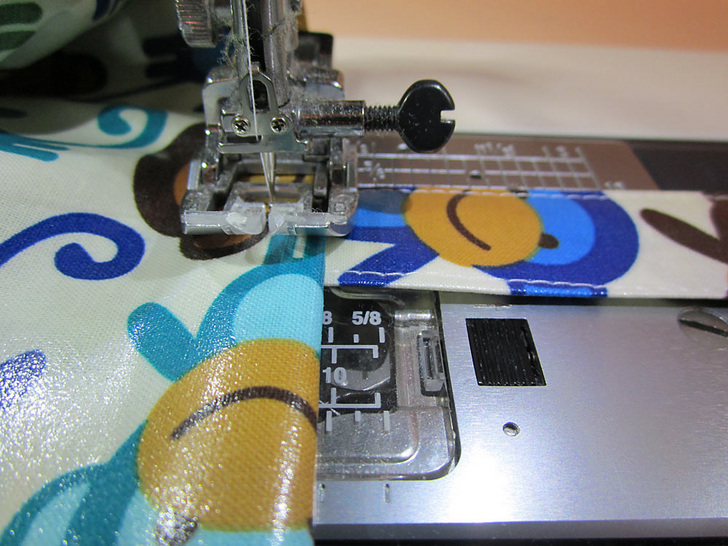 25. Edgestitch all around the top of the bag, making sure the closure tab is pulled up and out of the way.