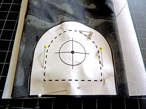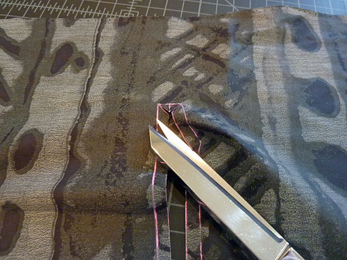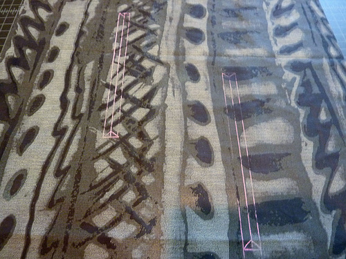 - Using a fabric pen or pencil that will wash away or vanish with exposure to the air, mark boxes for the two vertical zippers.