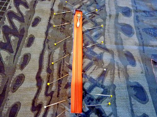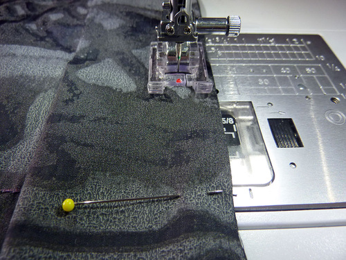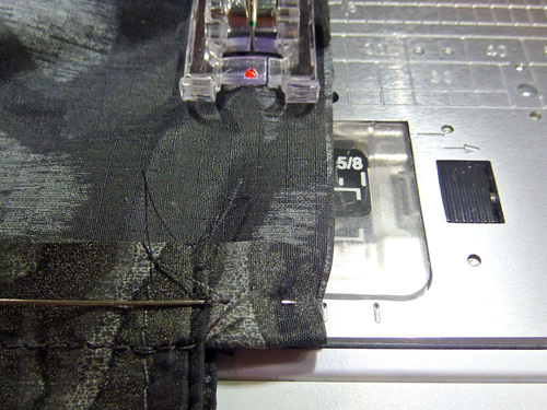 - Be very careful at the top to make sure your seam runs in line with the open end. Your side seams should run right next to the casings, but should not penetrate into the casings.