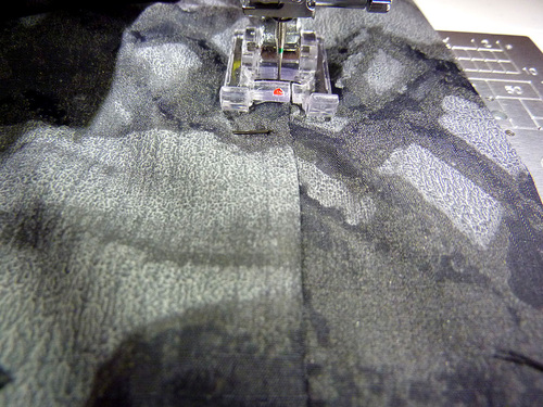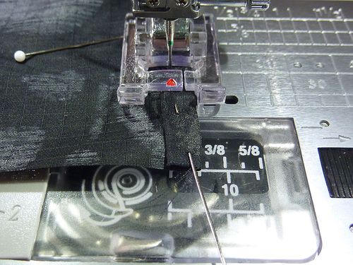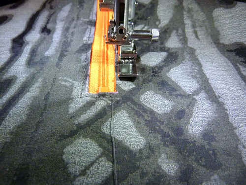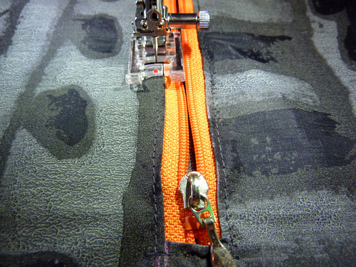 - Attach a Zipper foot. Thread the machine with thread to match the exterior fabric in the top and bottom.
