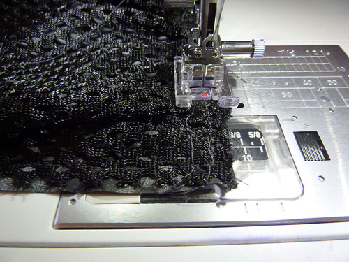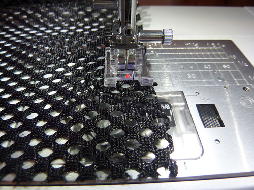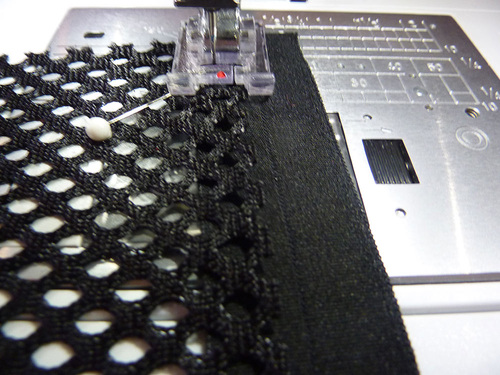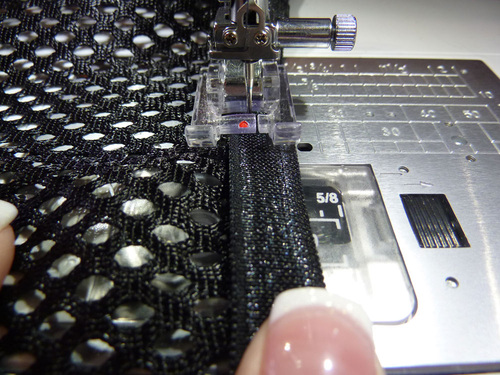 - As you stitch, stretch the elastic to fit while keeping the mesh flat.
