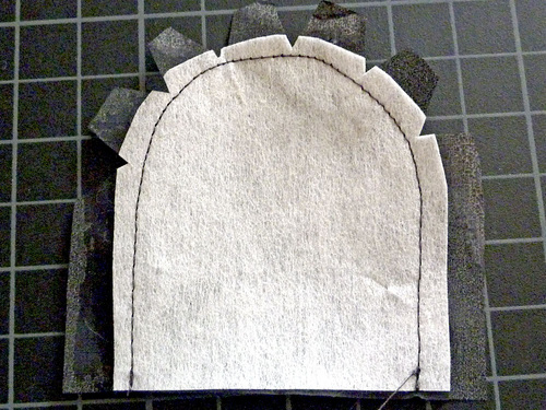 - From the fusible interfacing, use the pattern to cut TWO tabs.