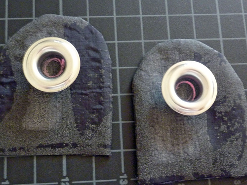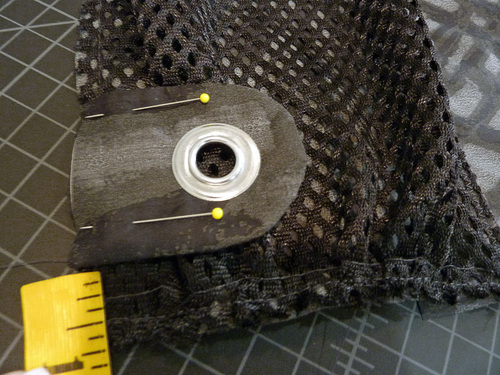 - Using the original printed pattern as your guide, mark the position for the grommet on each tab.