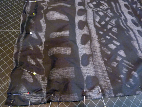 - Flip over the pinned panels so they are right side up to make the final vertical seams that will create the left sides of the pockets. The top, bottom and right sides of pockets will be created within the construction seams.