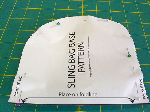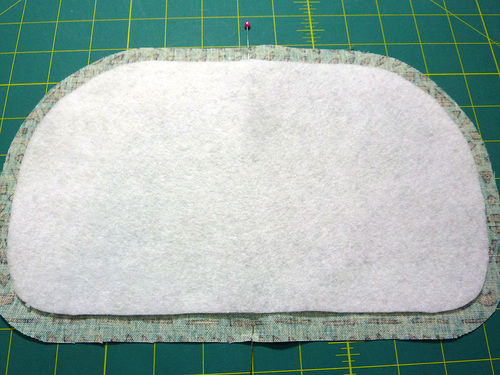 - Fold the fused base panel in half vertically to find the center of the front and back edges. The back edge is the straighter portion of the oval. Place a pin at each center point.