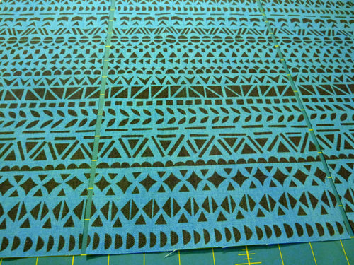 NOTE: If using a stripe as we did, we suggest cutting the pocket with the stripes running the opposite direction from the main panel.