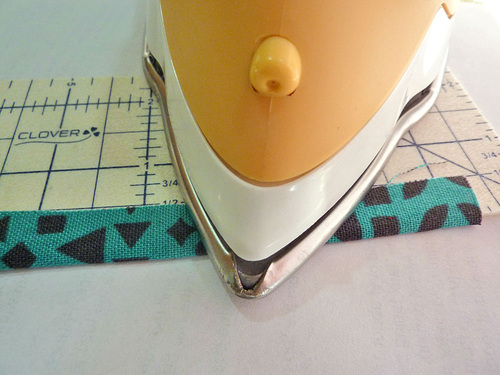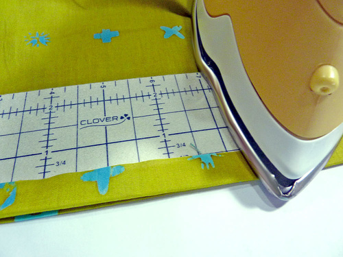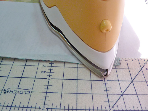 - Fold down the top raw edge ½” all around. We’re using our Clover Hot Hemmer.
