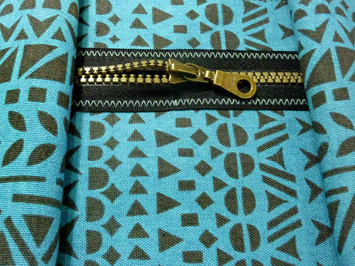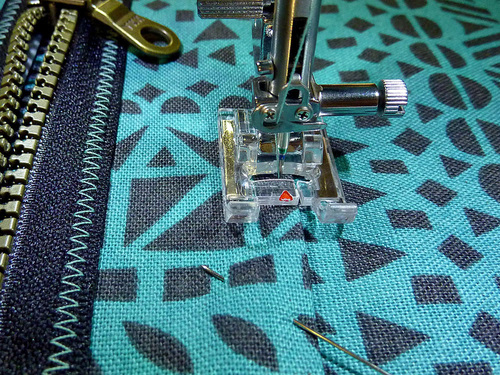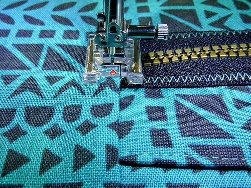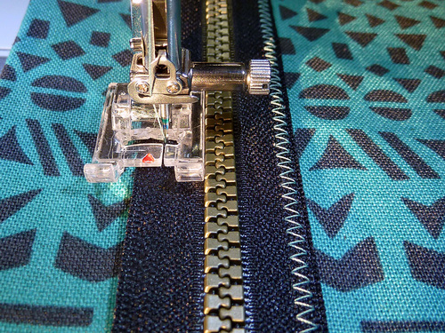 - Set up the machine for a medium zig zag in thread that matches the exterior fabric but will contrast with the zipper tape.