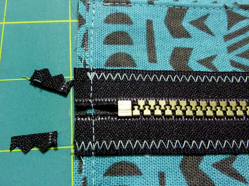 - Unzip the zipper about half way. The ends of the zipper tape will likely extend beyond the fabric just a bit. This is okay.
