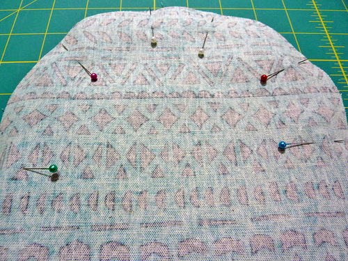 - Place the two flap panels right sides together. Pin along the sides and around the curve. The straight top edge remains open.