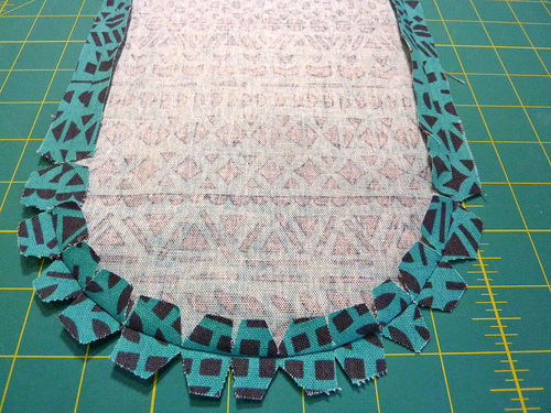 - Clip the curve and press open the seam allowance. This is a fairly tight curve so we clipped a small triangle from the seam allowance about every ½”.