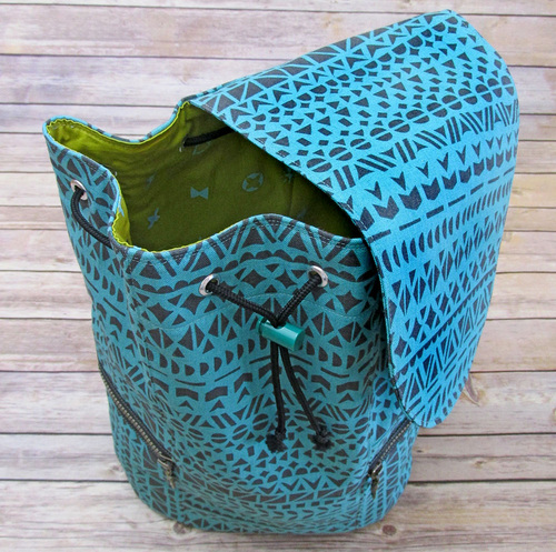 - In order to create the cool pockets for this bag, you need to work with separate sections that will then be sewn back together to make a continuous exterior panel. However, rather than cut each section individually, it’s better to slice one large panel into multiple pieces. Then, when you sew them back together, your motif will be a match all the way around.