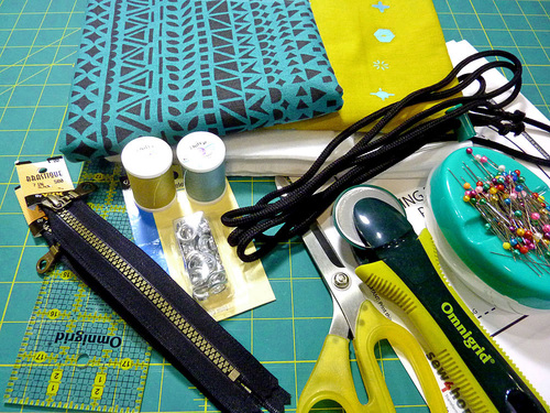 - 1½ yards of ¼” soft cording for the drawcord; we used a twisted cotton cording in black – remember, it needs to be able to fit through the grommets and the cord lock