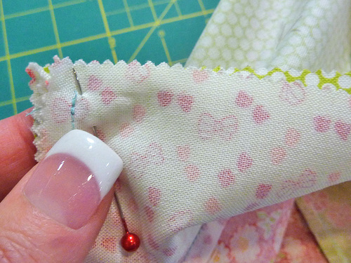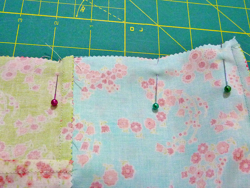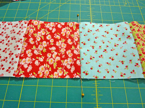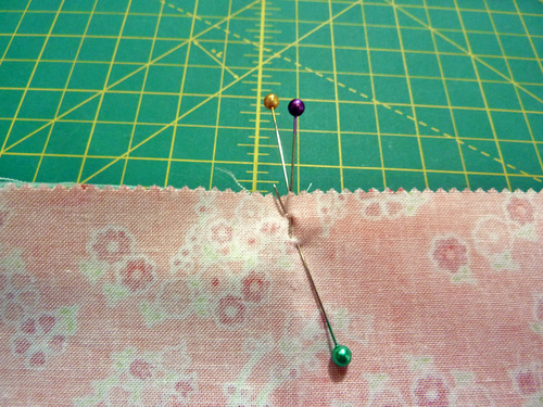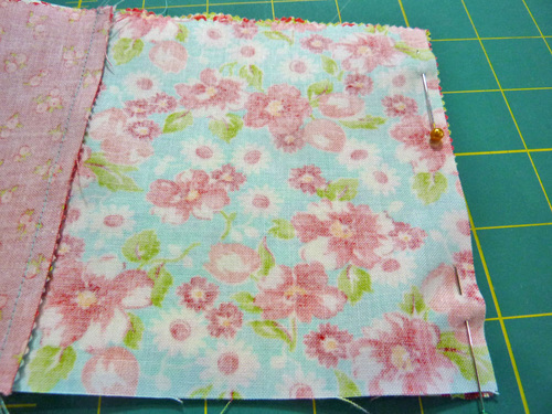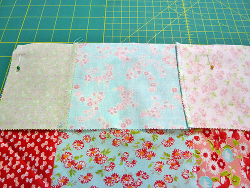 - Re-press all the seam allowances if necessary and, again working in order from top to bottom or bottom to top, pin each row right sides together along the inner edges.