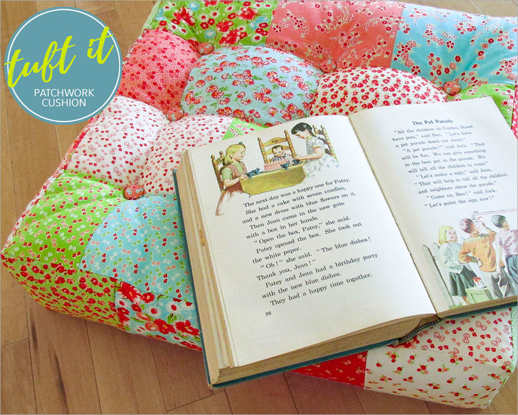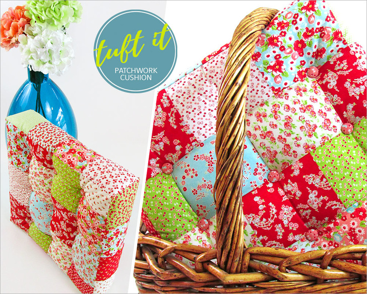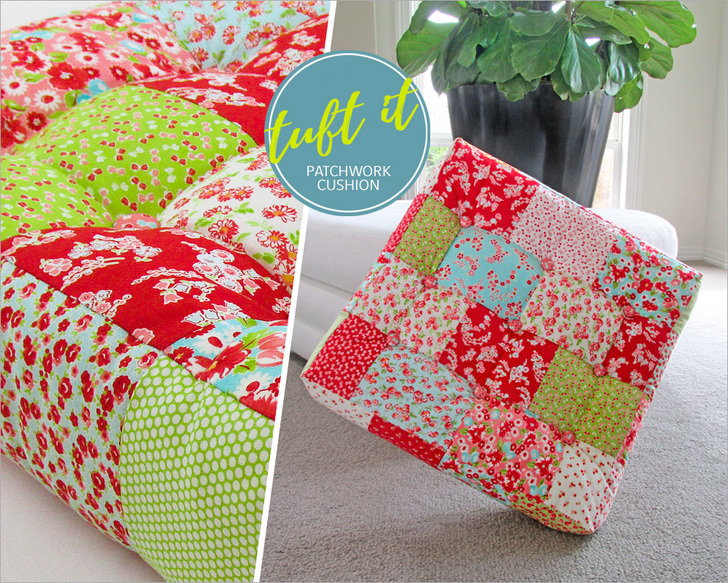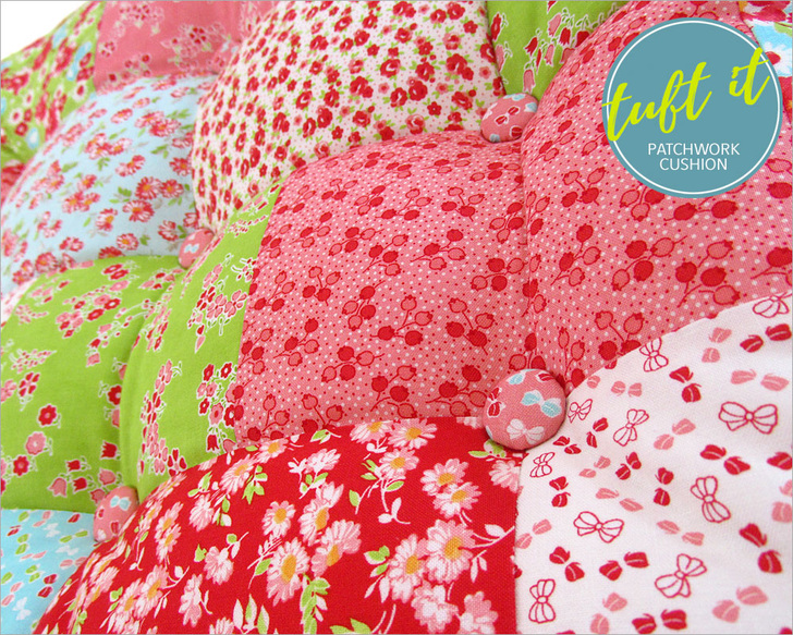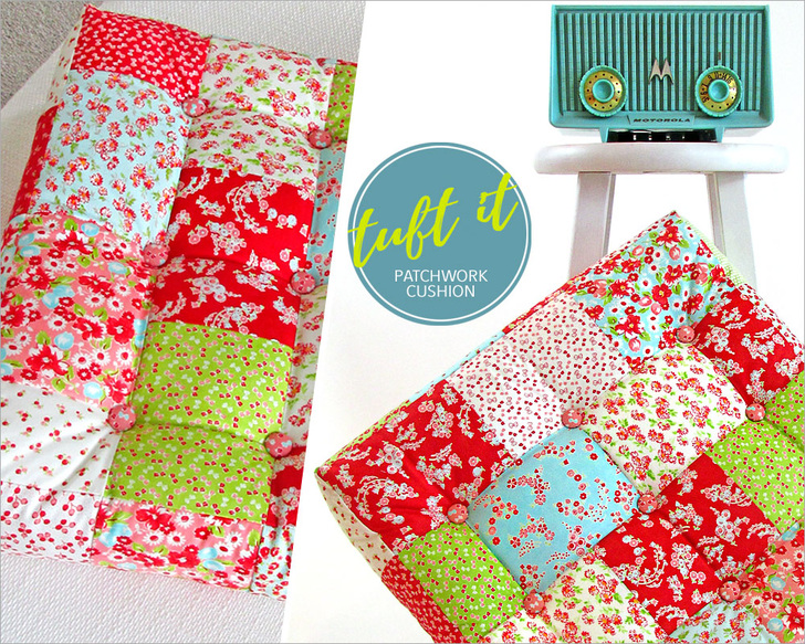 A short list of round things that make me smile: baby thighs, ice scream scoops, rolling hills, tufted cushions. Creating undulating curves across a flat surface is a wonderful way to add dimensional interest to a plain cushion. This pretty patchwork cushion provides a bit of tufting inspiration to make you smile. As listed below in Supplies, the proper home décor upholstery tools help make the tufting job easier and provide the most professional finish. We have a full tutorial to take you through the three most common options: stitch tufting, button tufting, and bolster tufting.